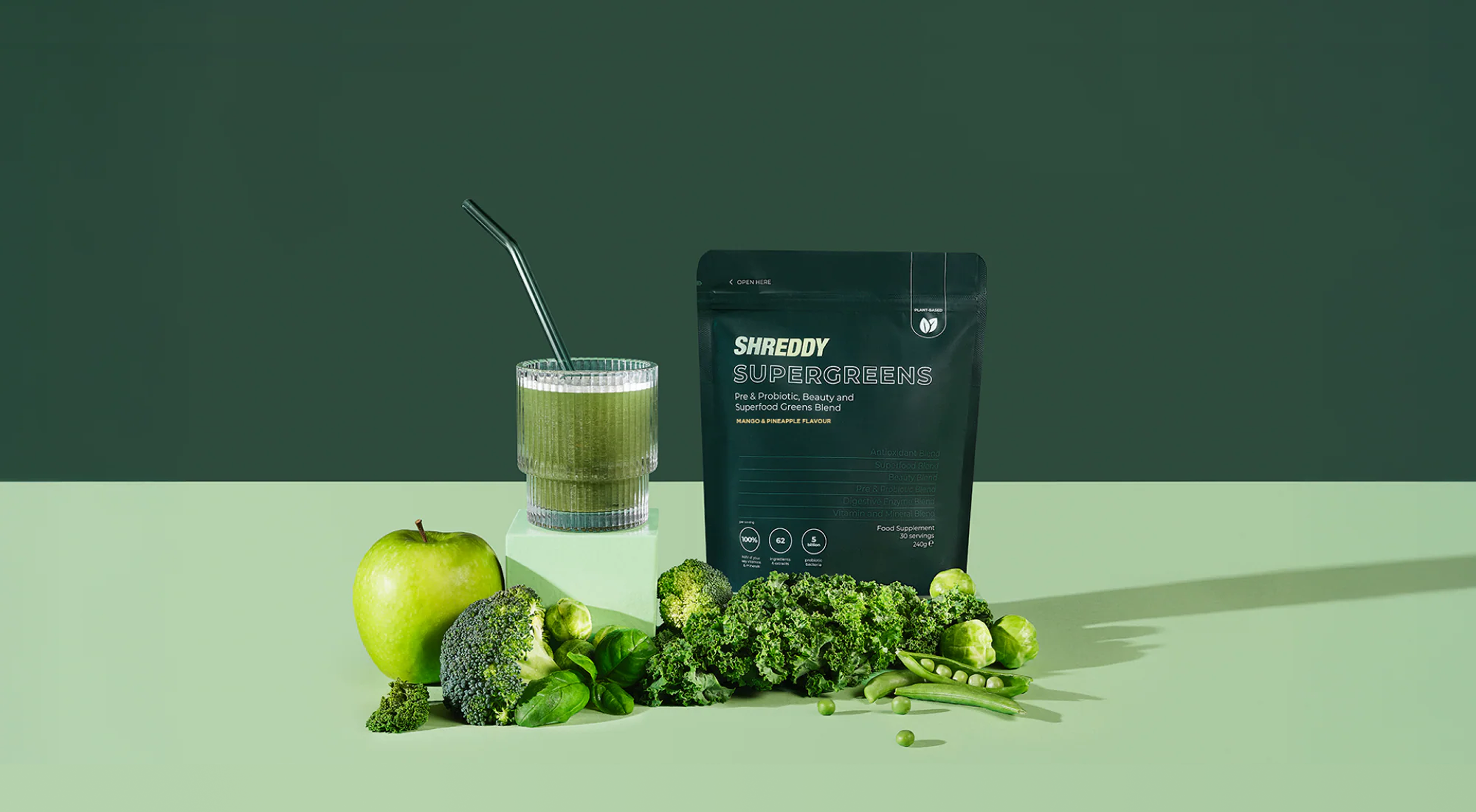 SHREDDY SUPERGREENS, our pre & probiotic, beauty, superfood & antioxidant blend. Per serving our SUPERGREENS contains:
