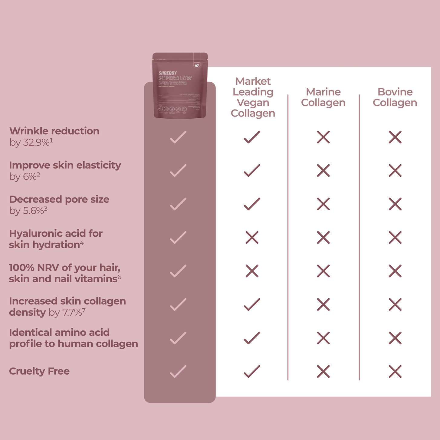 Elevate your skincare game with SHREDDY SUPERGLOW, clinically proven drinkable skincare backed by science.